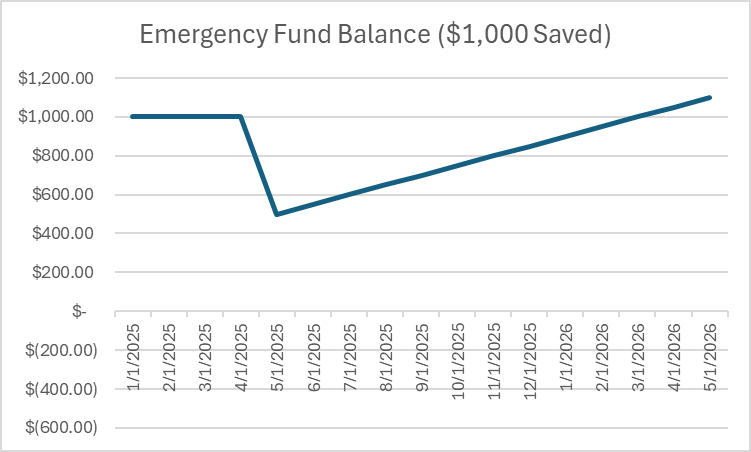 Now let's look at what your Emergency Fund would look like if you already had $1,000 set aside for this exact emergency: